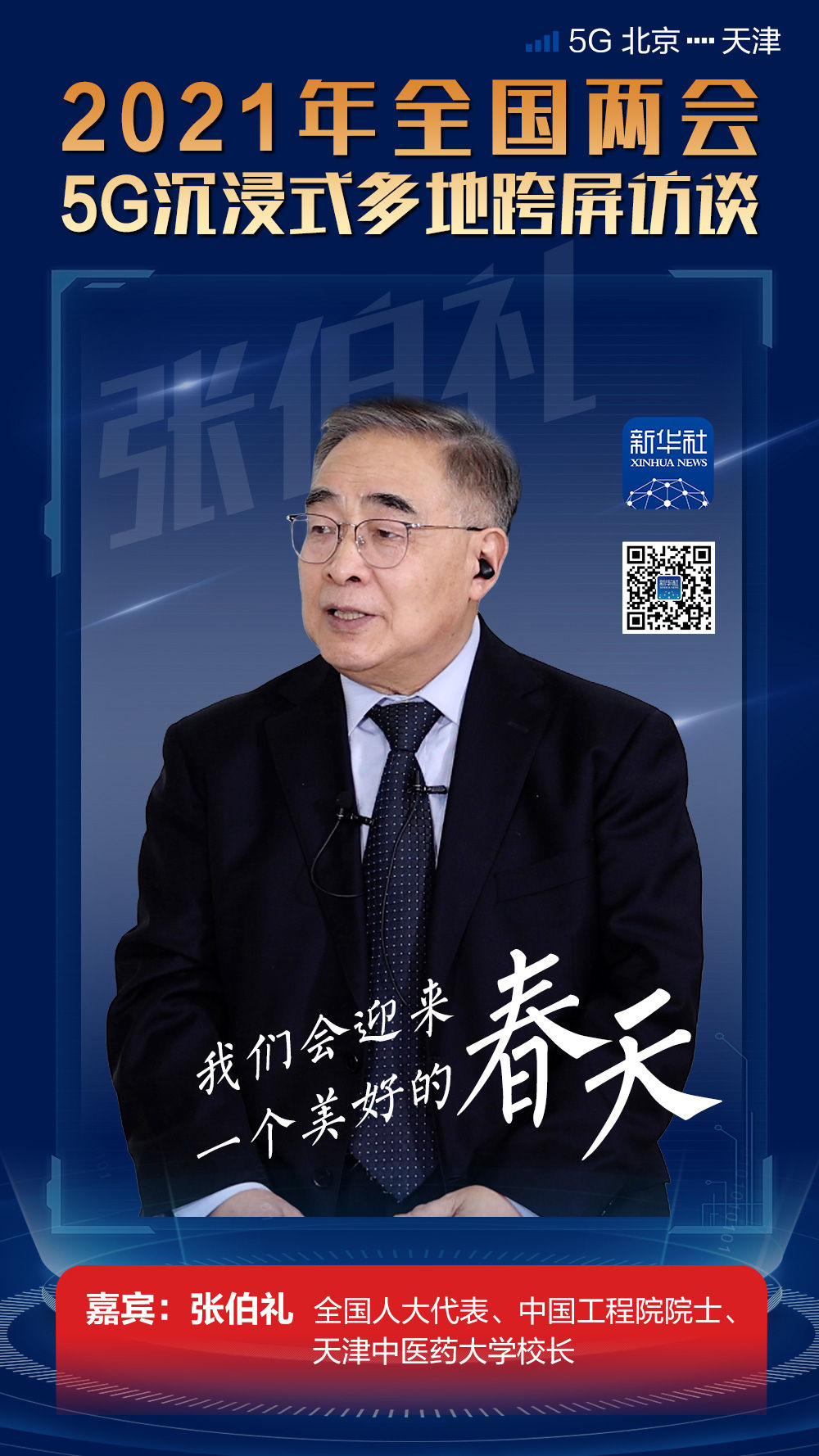 在访谈的最后,张伯礼对本次访谈形式感到很惊奇:“现在只有想不到的,没有做不到的。我今天身临其境,感觉怎么这么新奇,感到震撼。高科技的发展太快了,希望大家把身体调理好,享受我们的新生活!