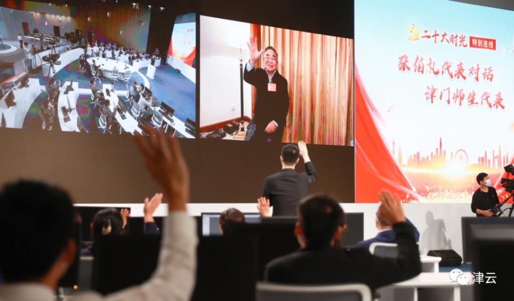10月18日晚上7点30分,在中国共产党第二十次全国代表大会胜利召开之际,津云新媒体与天津市教委联合举办了【二十大时光】特别连线:张伯礼代表对话津门师生代表主题活动。在津云中央厨房演播厅,在京参会的二十大代表张伯礼院士与本市高校科研工作者和青年学生,通过视频的方式进行连线,在云端相聚。