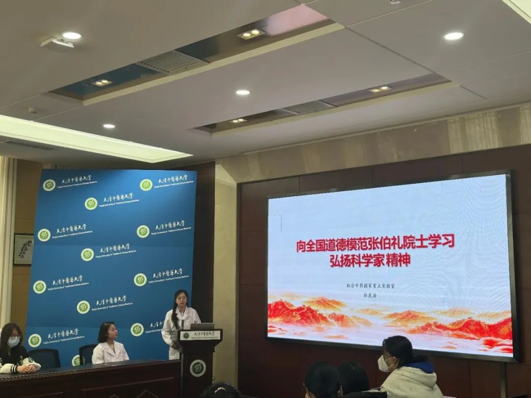 实验室教师团队阮静雅博士,围绕“什么是组分中药”、“组分中药的研究价值”以及“实验室的重点研究方向”等方面,通过组分中药研究实例,生动形象地讲解了抗疫中药组分研制、组分中药研究关键技术、中药组分信息库构建等内容,起到科学普及引领效果。杜昆泽博士以“向全国道德模范张伯礼院士学习,弘扬科学家精神”为主题,重点讲述了张伯礼院士带领科研团队不畏艰难,争分夺秒开展科学研究,为疫情防控提供有效药物和中医药治疗方案,彰显了伟大抗疫精神和科学家精神。鼓励同学们要向榜样学习,弘扬雷锋精神,树立正确的人生观、价值观,学好中医药知识,为中医药事业贡献青春力量。