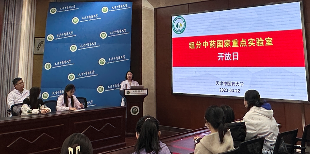 在走进实验室之前,召开了组分中药科普座谈会,常艳旭教授从科普教育活动的意义、实验室发展历程、平台建设、科学研究、成果转化、人才培养等方面向同学们进行了初步的介绍。