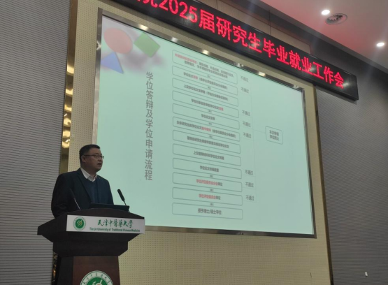 2月28日,中医药研究院召开2025届研究生毕业就业工作会议。中医药研究院党委副书记张晗、副院长常艳旭及部分导师、2025届全体毕业研究生参会。会议由研究院研究生工作办公室主任陈广涛主持。