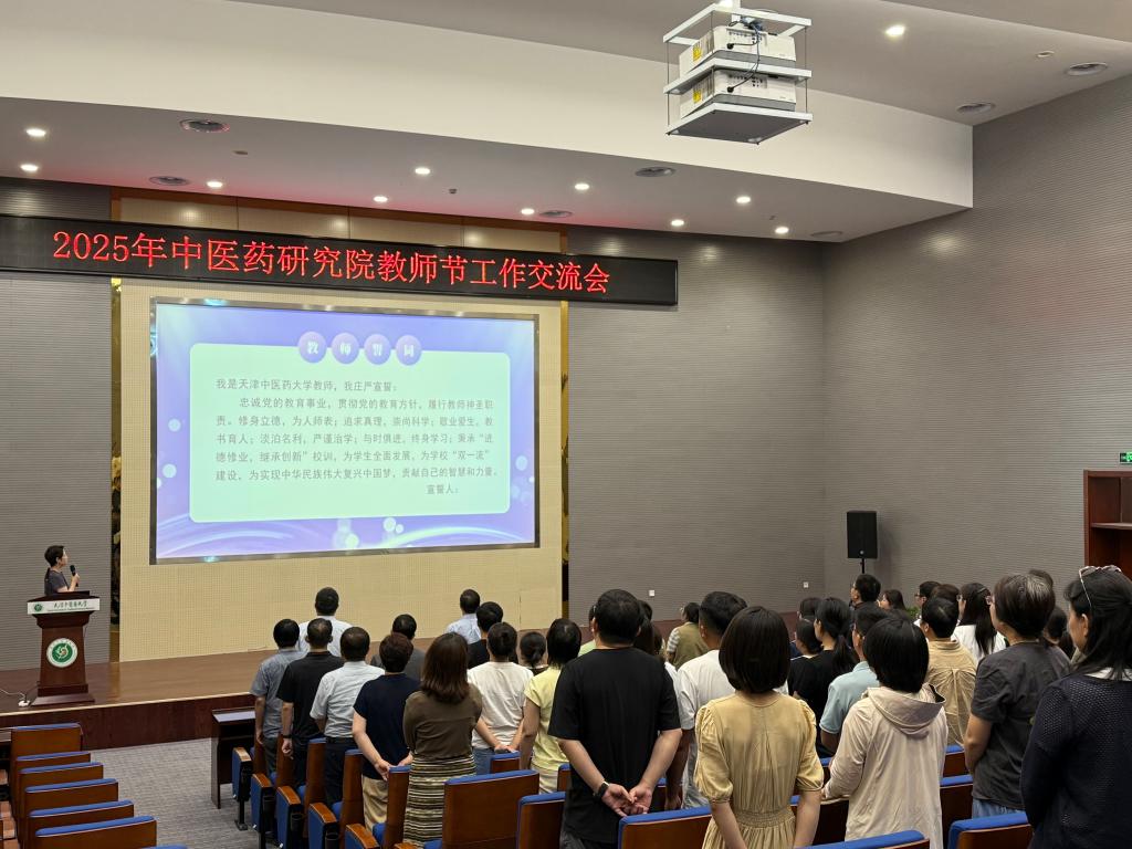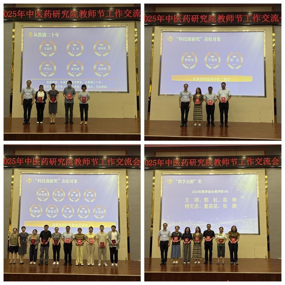 在第41个教师节到来之际,为大力弘扬教育家精神,生动展现新时代中医药教育工作者的精神风貌,凝聚育人兴教的磅礴力量,9月9日下午,中医药研究院召开以“以教育家精神铸魂强师,谱写教育强国建设华章”为主题的教职工交流会。天津中医药大学副校长、中医药研究院院长张俊华,中医药研究院党委书记王怡、副书记张晗、副院长常艳旭以及教职工、博士后参会。会议由常艳旭副院长主持。