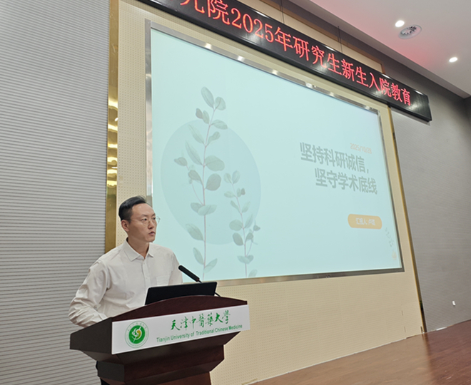 为帮助研究生新生强化科研诚信意识,坚守科研诚信底线,坚决杜绝学术不端行为,10月29日,中医药研究院开展2025年研究生新生入院教育学术专题培训,特邀天津市药品化妆品审评查验中心邬方宁、学校科研处卢珑做学术讲座。研究院领导、部分教师和2025级研究生新生参加培训,培训由中医药研究院党委副书记张晗主持。