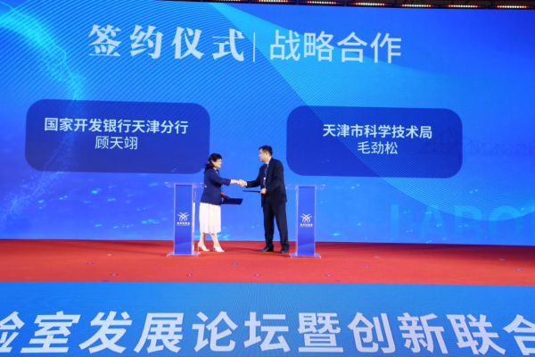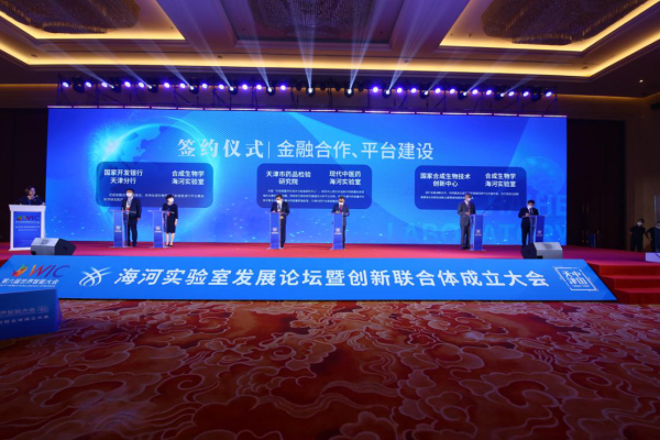 海河实验室创新联合体成立大会举行了合作签约仪式,5家海河实验室与国家开发银行天津分行、天津药品检验研究院等签署战略合作协议,为引进高端人才代表颁发了聘书。5家海河实验室自揭牌成立以来,始终围绕“重在应用、瞄准产业”的建设方向,瞄准科技赋能天津市“1+3+4”重点产业和12条重点产业链发展,已紧密对接、服务百余家企业,与一批产业链企业达成战略合作意向,联合开展技术攻坚,海河实验室第一批已立项的119个项目中有80%以上的项目面向产业,支撑服务天津重点产业高质量发展和“制造业立市”。