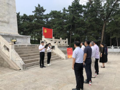校党委书记刘革生带领全体党员在革命烈士纪念碑前,重温入党誓词,坚定初心使命。