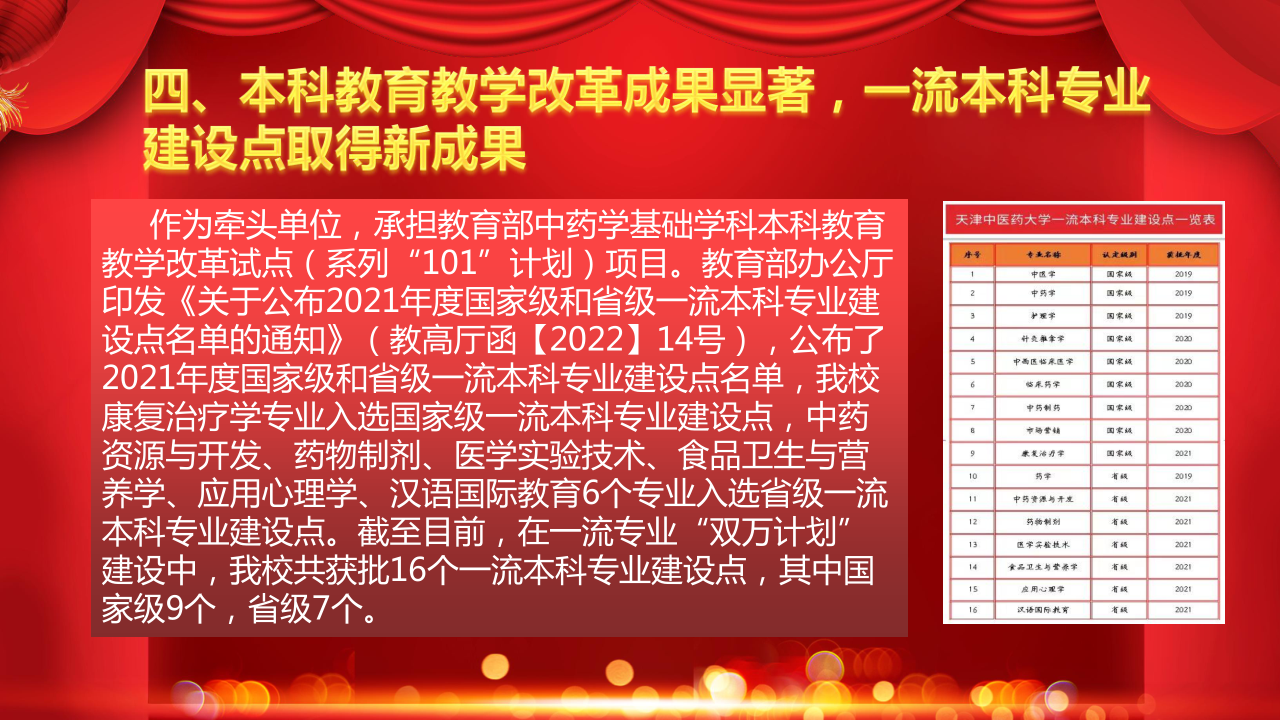 四、本科教育教学改革成果显著,一流本科专业建设点取得新成果