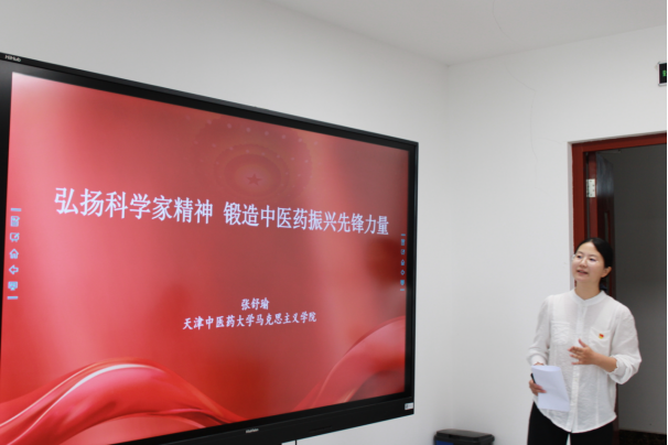马克思主义学院张舒瑜老师以“弘扬科学家精神 锻造中医药振兴先锋力量”为题作专题讲座。她结合中医药科研实际,从科学家精神的传承、如何把握时代脉搏、在实践中锻造先锋力量三个方面,阐释了科学家精神的具体内涵,还分享了钱三强、顾方舟等老一辈科学家的感人事迹。