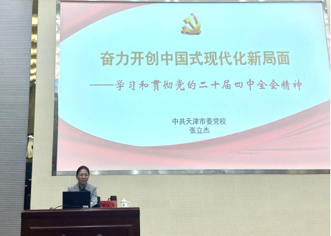 为深入学习贯彻党的二十届四中全会精神,精准把握“十五五”规划实践要求,切实提升领导干部使命担当与履职能力,11月24日下午,天津中医药大学党委特邀中共天津市委党校科学社会主义教研部张立杰教授作专题讲座。校党委书记刘革生、市纪委监委驻天津中医药大学纪检监察组组长柳春敏、副校长张俊华出席,学校处级领导干部、“杏林培优”支部书记示范班学员、各二级党组织教师党支部书记代表、专职组织员及马克思主义学院思政教师代表共130余人参加培训。